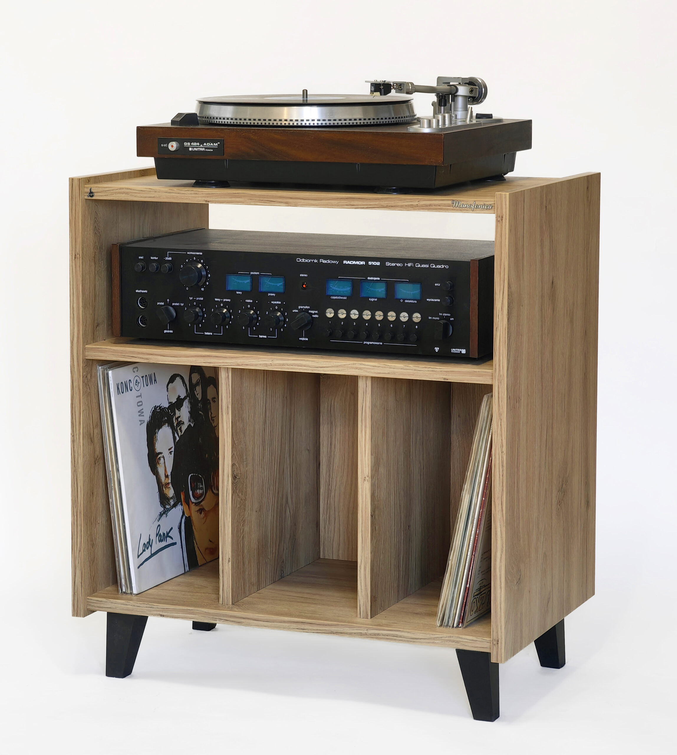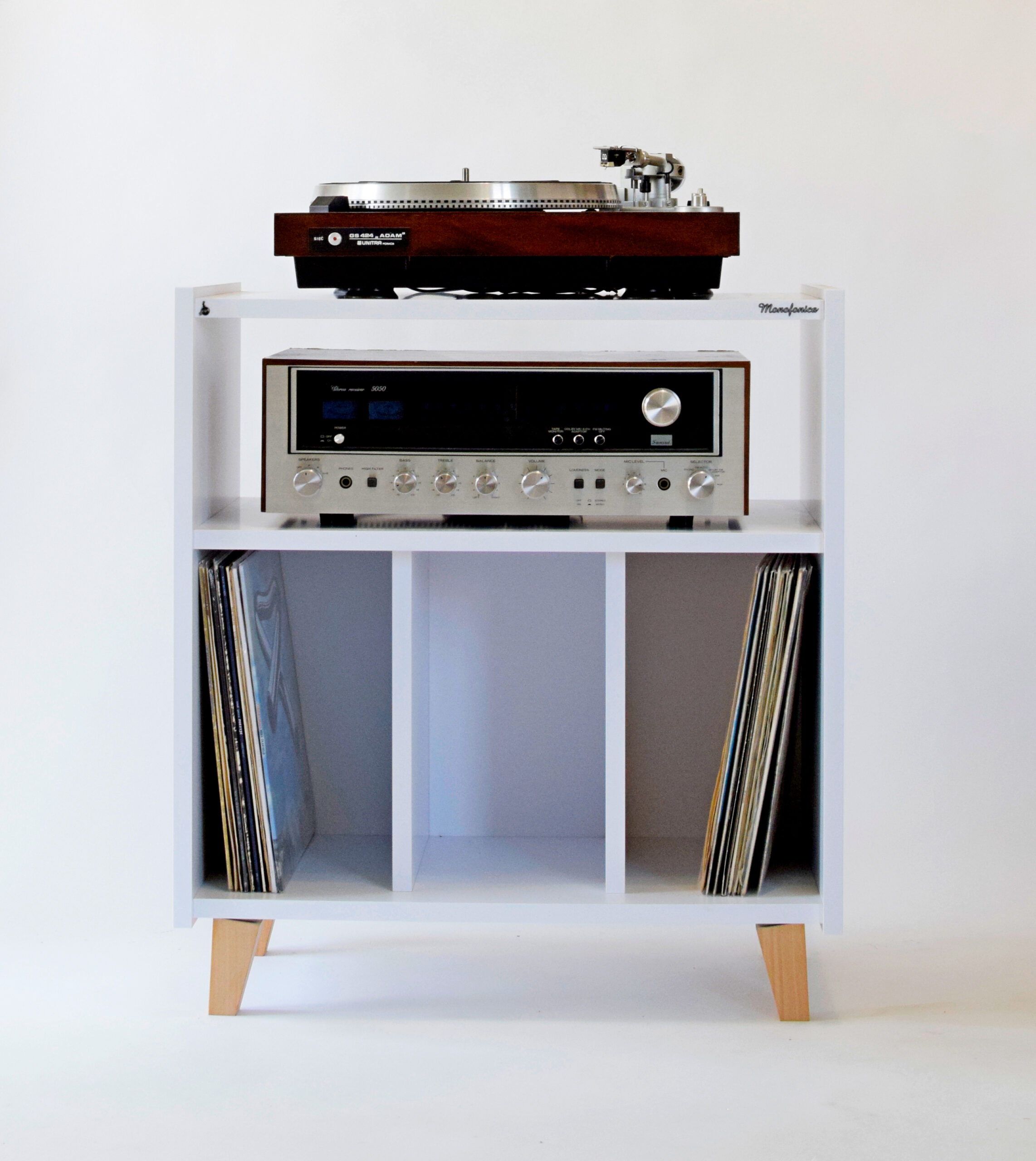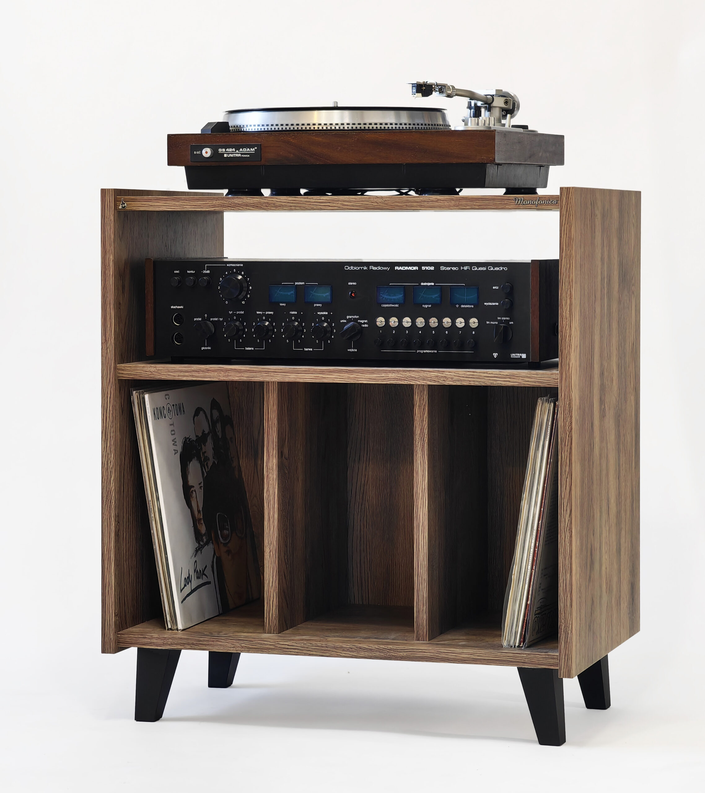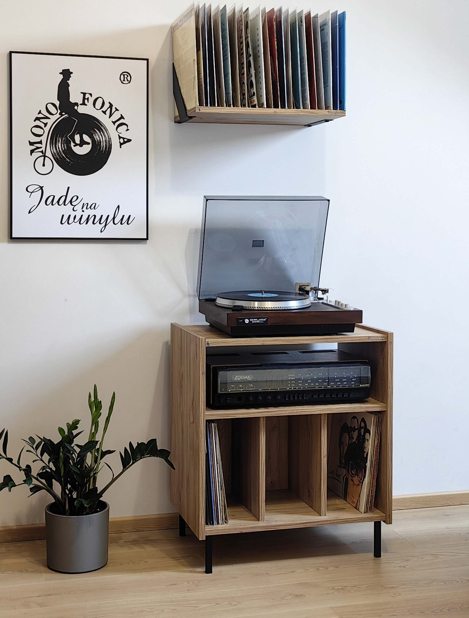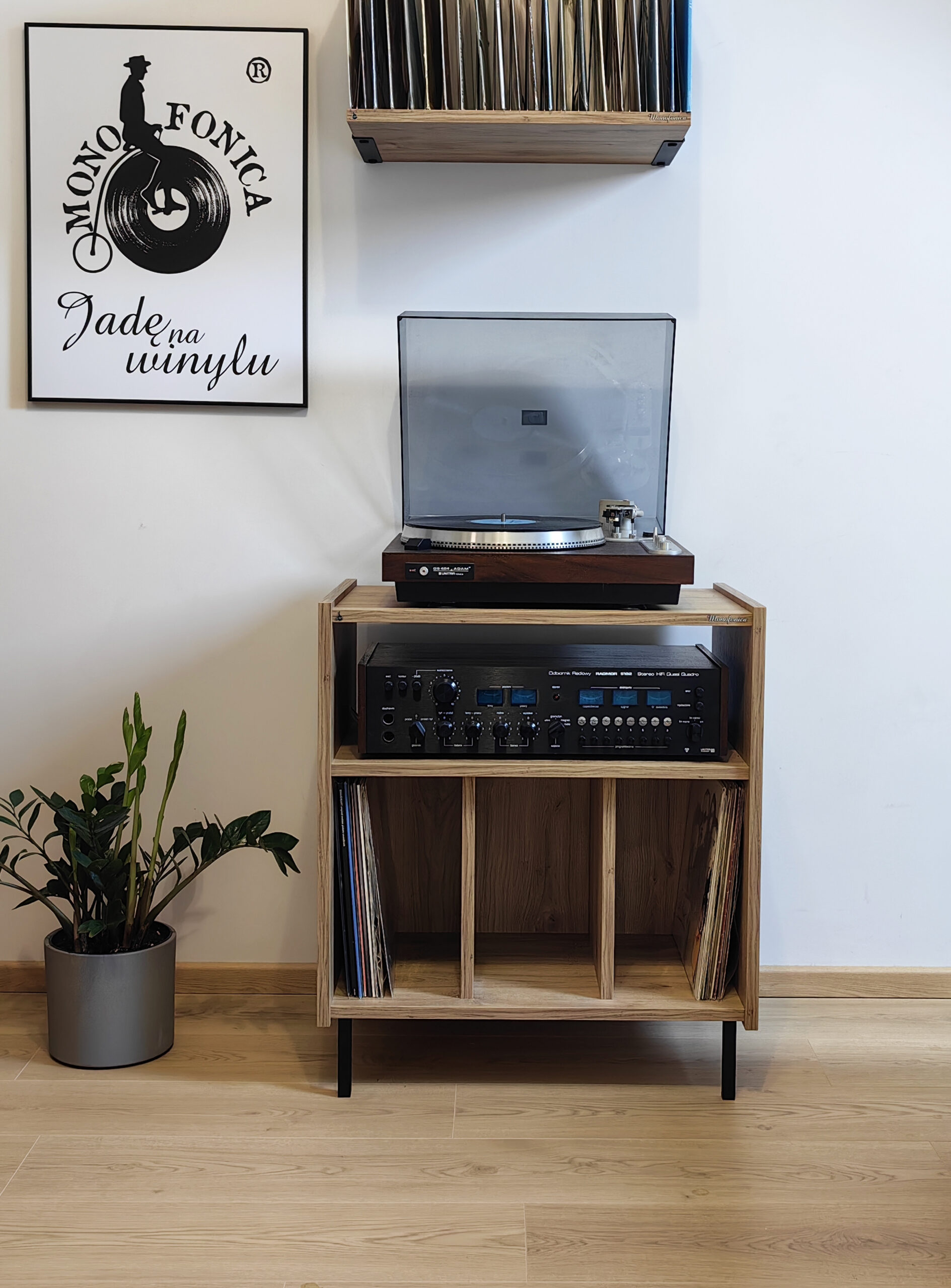 Szafka gramofonowa Monofonica NOVA z przeznaczeniem na gramofon, wzmacniacz i płyty.       Piękne wzornictwo i szeroka gama kolorów nawiązująca do lat 70 i 80 ubiegłego wieku.  Jakość i funkcjonalność potwierdzona zadowoleniem naszych klientów w kraju i za granicą.