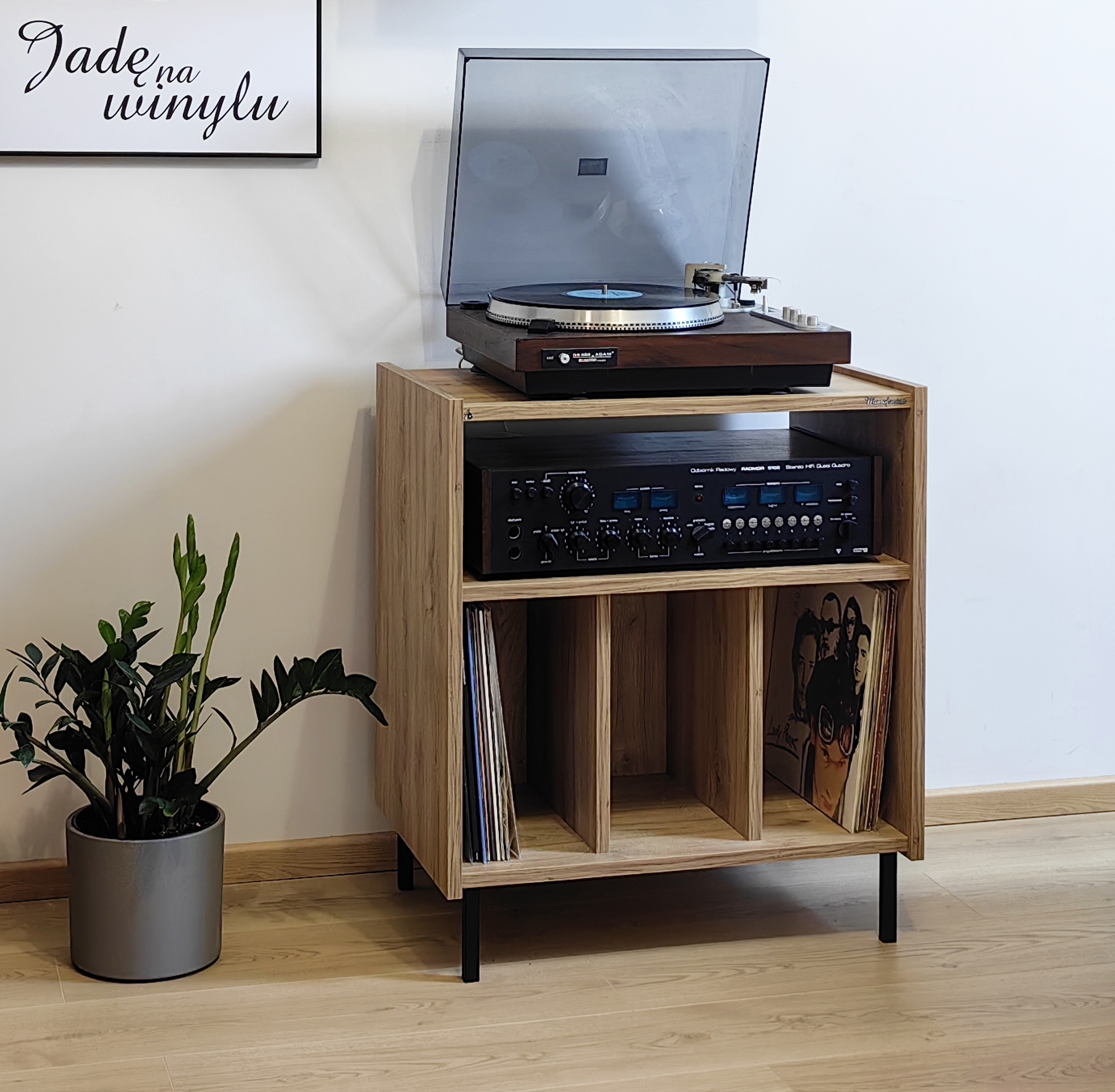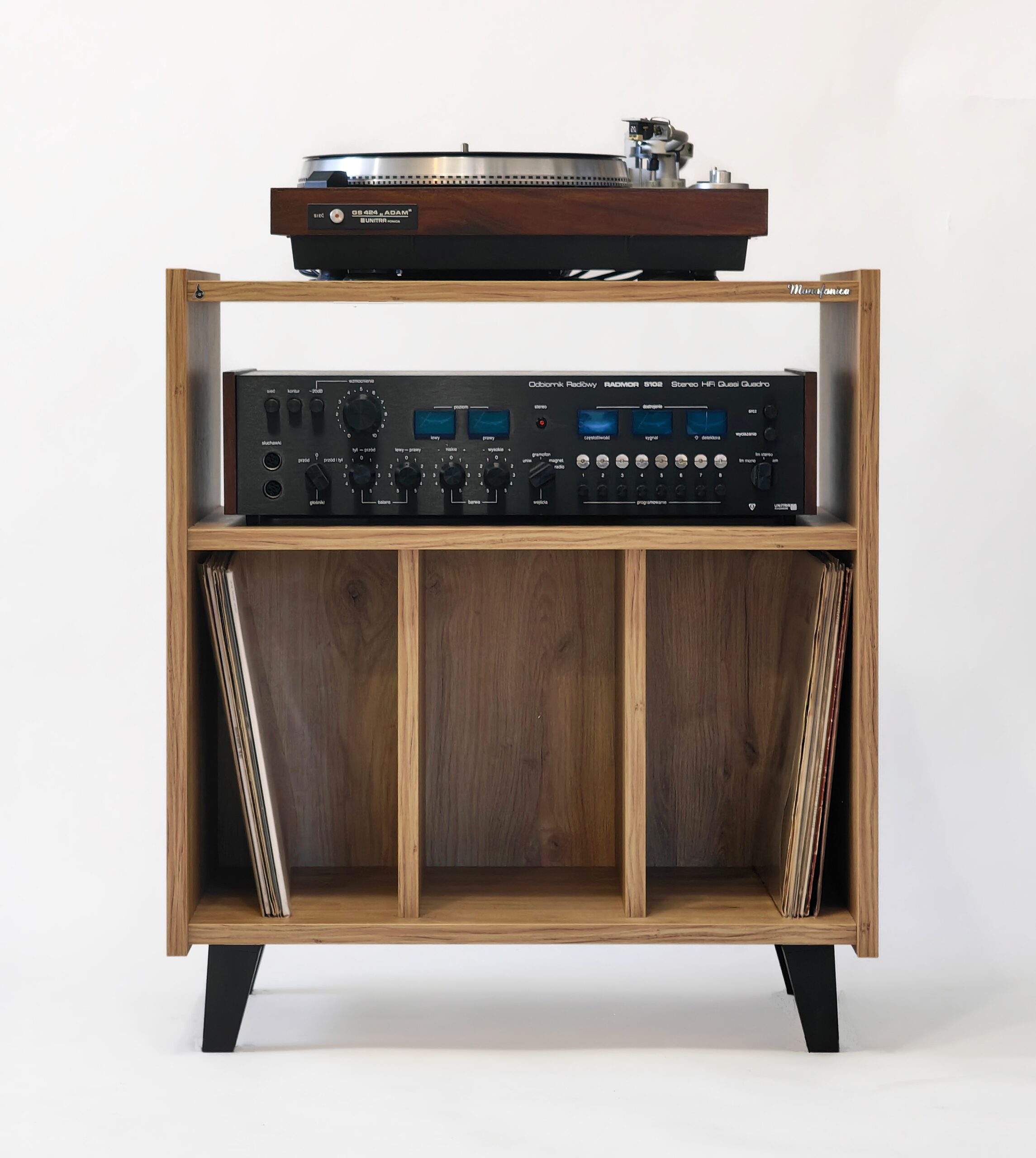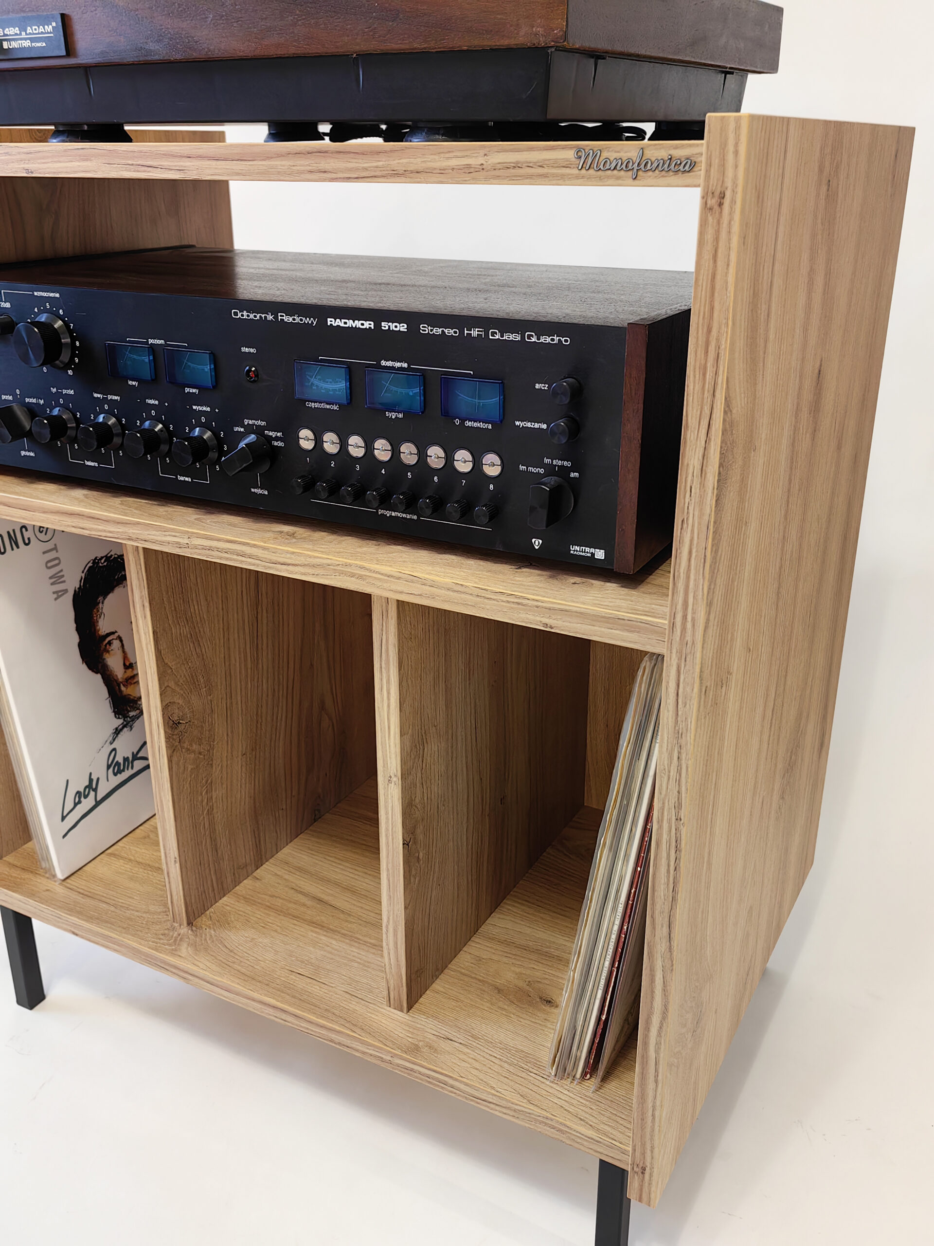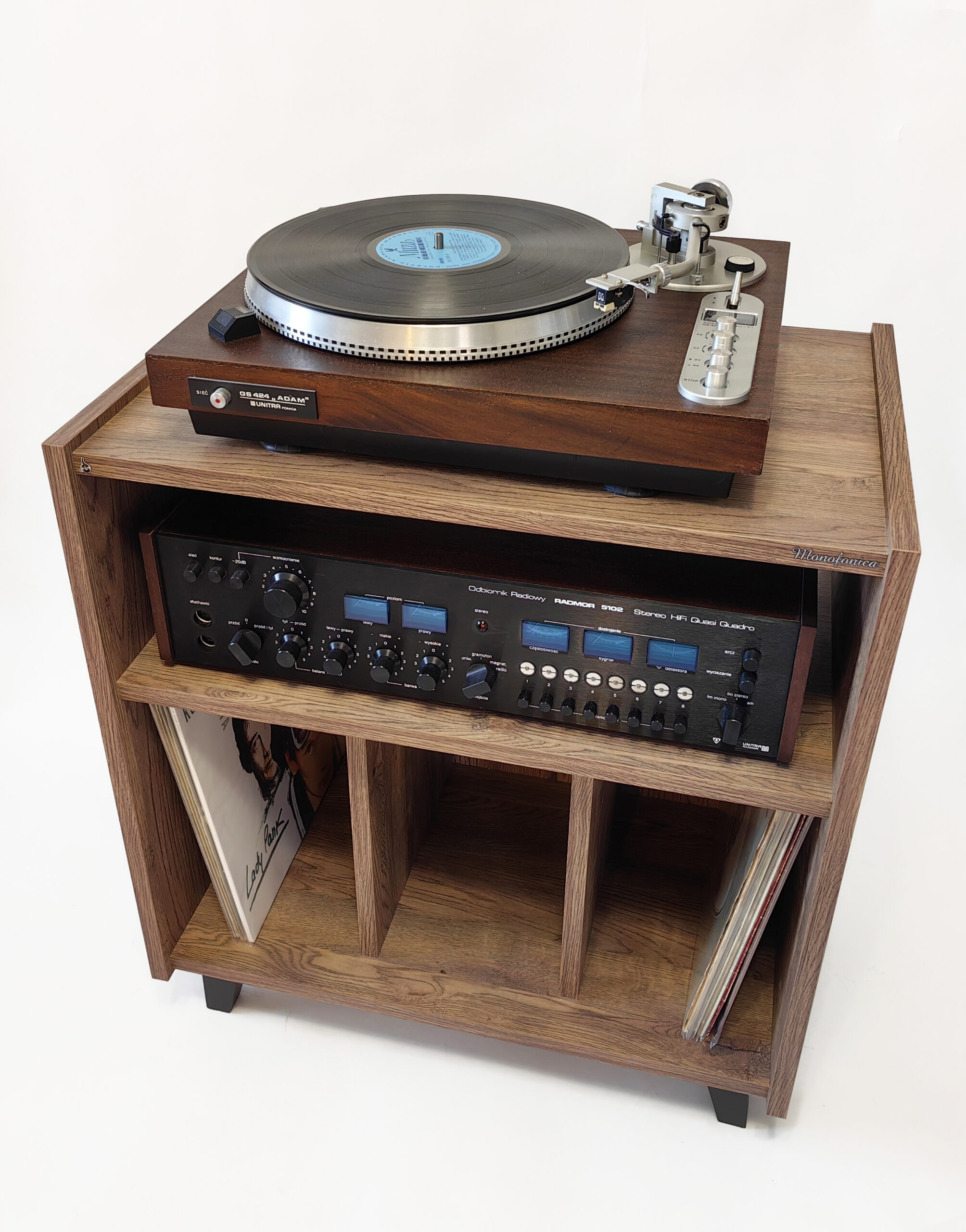 Szafka gramofonowa Monofonica NOVA z przeznaczeniem na gramofon, wzmacniacz i płyty.       Piękne wzornictwo i szeroka gama kolorów nawiązująca do lat 70 i 80 ubiegłego wieku.  Jakość i funkcjonalność potwierdzona zadowoleniem naszych klientów w kraju i za granicą.